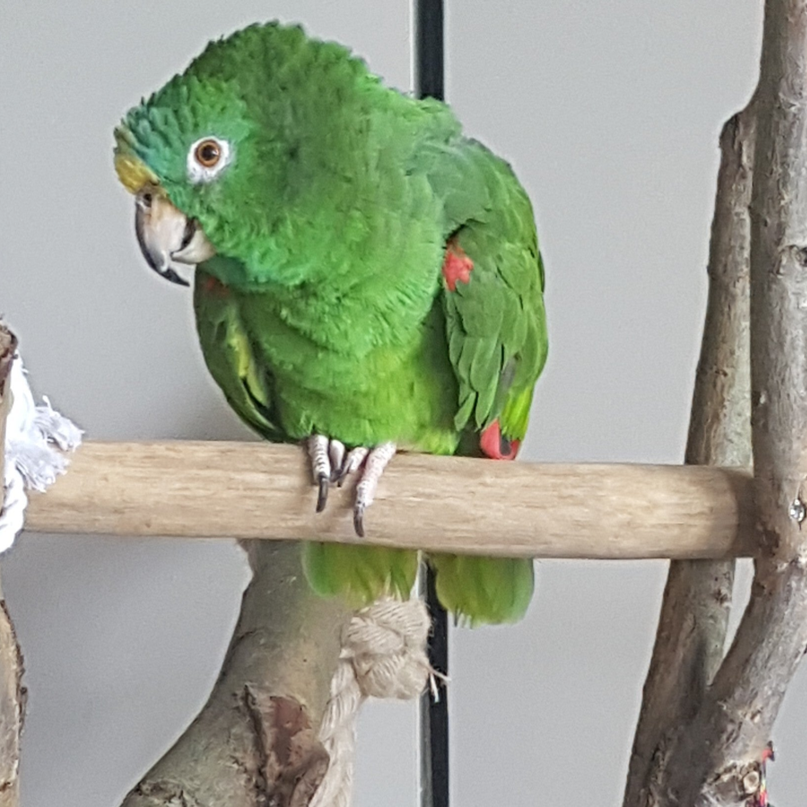 Lorito kwam via een collega onverwacht bij ons terecht. Zijn opa de eigenaar van Lorito ging snel achteruit in gezondheid en kon niet langer voor hem zorgen.
